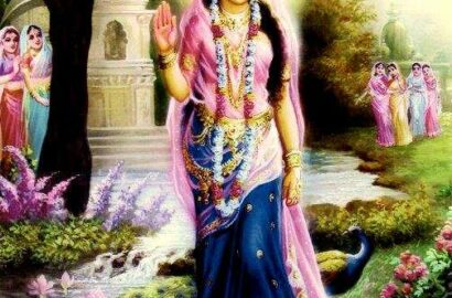 Radharani’s particular night dress After returning in the early morning hours from one such secretive rendezvous, Srimati Radharani rested peacefully in Her beautiful bedroom quarters. Meanwhile, Her intimate maidservants busied themselves... Read More
