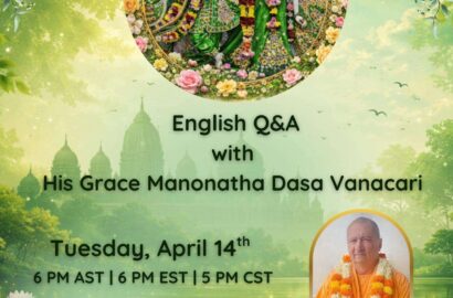 Questions and Answers in English with His Grace Manonatha Dasa Vanacari Hare Krishna, disciples and friends of Manonatha Maharaja. Please join us on Tuesday, April 14, 2026 for a Zoom videoconference of... Read More