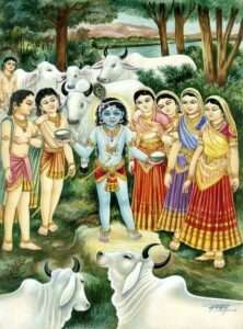 “Oh, Parjanya, como resultado de tus excelentes austeridades, te nacerán cinco hijos. El mejor de ellos será el del medio, el tercero. Se le conocerá con el nombre de Nanda. El hijo de este Nanda triunfará en todo el mundo y traerá alegría a la tierra de Vraja. Tanto los semidioses como los demonios adorarán sus pies de loto con las joyas que adornan sus cabezas.”