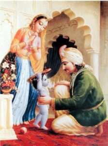 Extasiado al ver la belleza de su hijo, Nanda Maharaja sonrió y respondió: