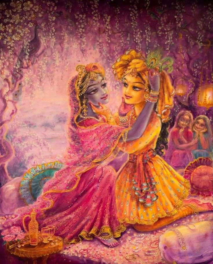 El día de Gopastami, Madre Yashoda primero envió a Krishna a reunir a los terneros. Lo vistió como a un príncipe con adornos enjoyados, un hermoso turbante y ropas de seda. Cuando los amigos de Krishna lo vieron, comenzaron a burlarse de Él.