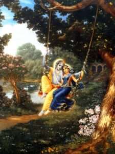 Luego Radha y Krishna se sentaron juntos en el columpio y participaron en pasatiempos de jhulana-lila junto con sus amigas Lalita, Vishakha y las otras Gopis.