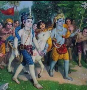 Krishna juega con los Sakhas en este bosque e imita el zumbido de las abejas. Uno de los nombres del abejorro es Madhusudana, y también uno de los nombres de Krishna es Madhusudana.