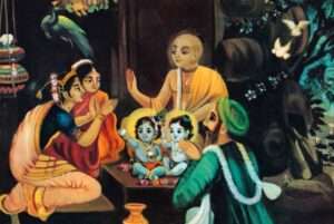A veces llevaba a Krishna y Balarama sobre sus hombros y también los bañaba.