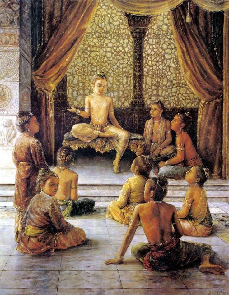 Prahlada began teaching his fellow students about Krsna consciousness, but the boys initially resisted with the excuse that they would take up Krsna consciousness in their old age. They told Prahlada that now was the time to play.