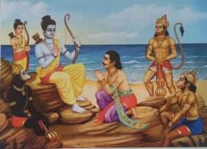 In less than an hour Vibhisana arrived where Rama’s armies were encamped and he announced his coming. His arrival caused a bad mood. Many Vanaras were wary, but Hanuman recognized him and remembered how he had defended him from everyone else’s opinion.