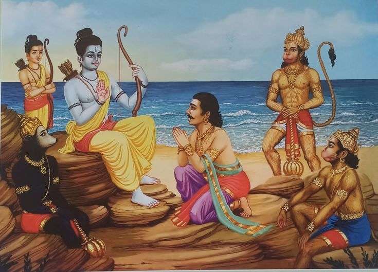 Vibhisana was accepted as a friend and ally and was brought before Rama. He bowed respectfully.